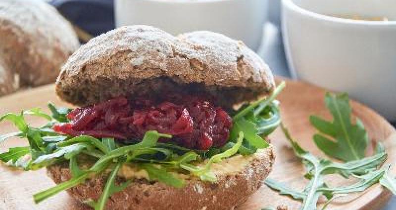 Broodje hummus met rode biet