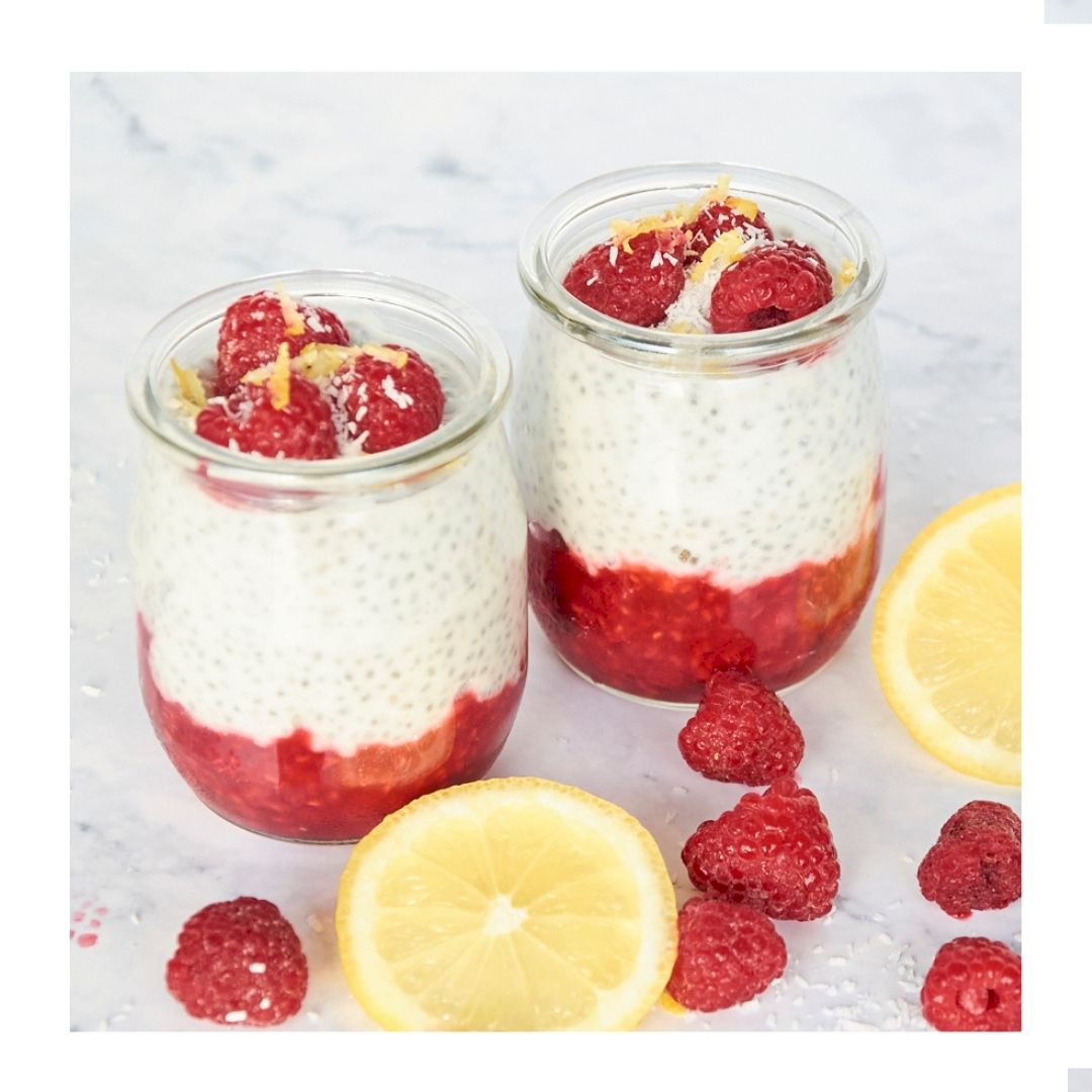 Chiapudding met kokosyoghurt en frambozen