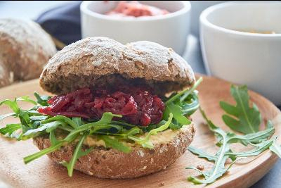 Broodje hummus met rode biet